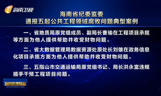 海南省纪委监委通报五起公共工程领域腐败问题典型案例