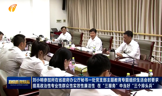 刘小明参加所在省政府办公厅秘书一处党支部主题教育专题组织生活会时要求 提高政治性专业性群众性实效性廉洁性 在“三服务”中当好“三个排头兵”