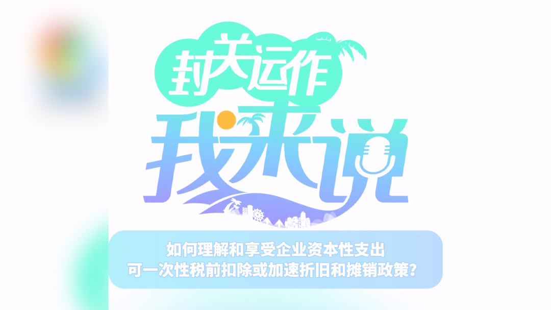 封关运作我来说⑨|如何理解和享受企业资本性支出可一次性税前扣除或加速折旧和摊销政策?