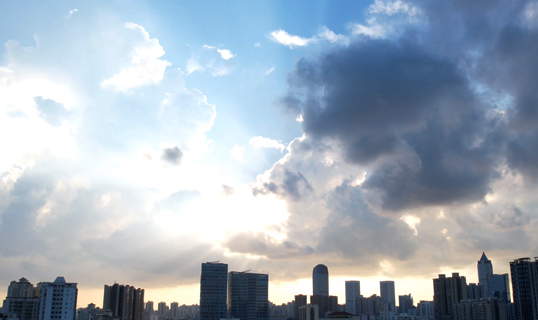 拍客|光束倾泻而下!海口天空出现“丁达尔效应”现象