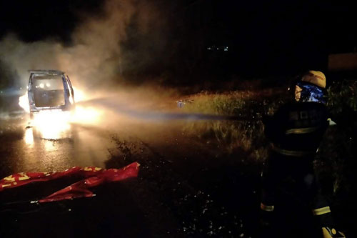 海口三门坡镇一面包车自燃 无人员伤亡
