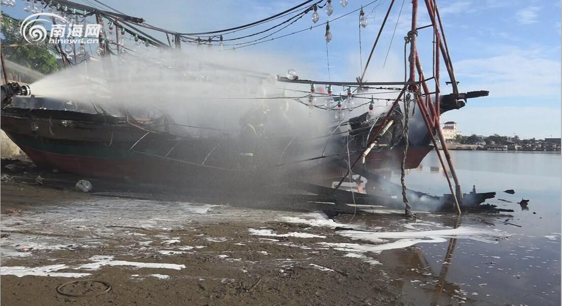 昌江海尾新港码头渔船失火 消防官兵奋力扑救