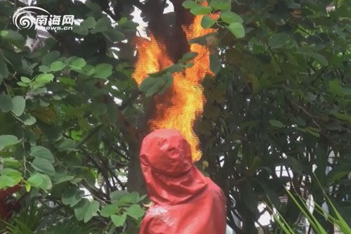 陵水:酒店游泳池旁树上惊现巨大“心形”排蜂窝