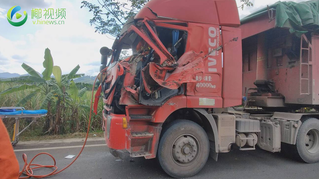 椰视频 | 昌江两货车路上发生碰撞致一人被困 消防破拆救援