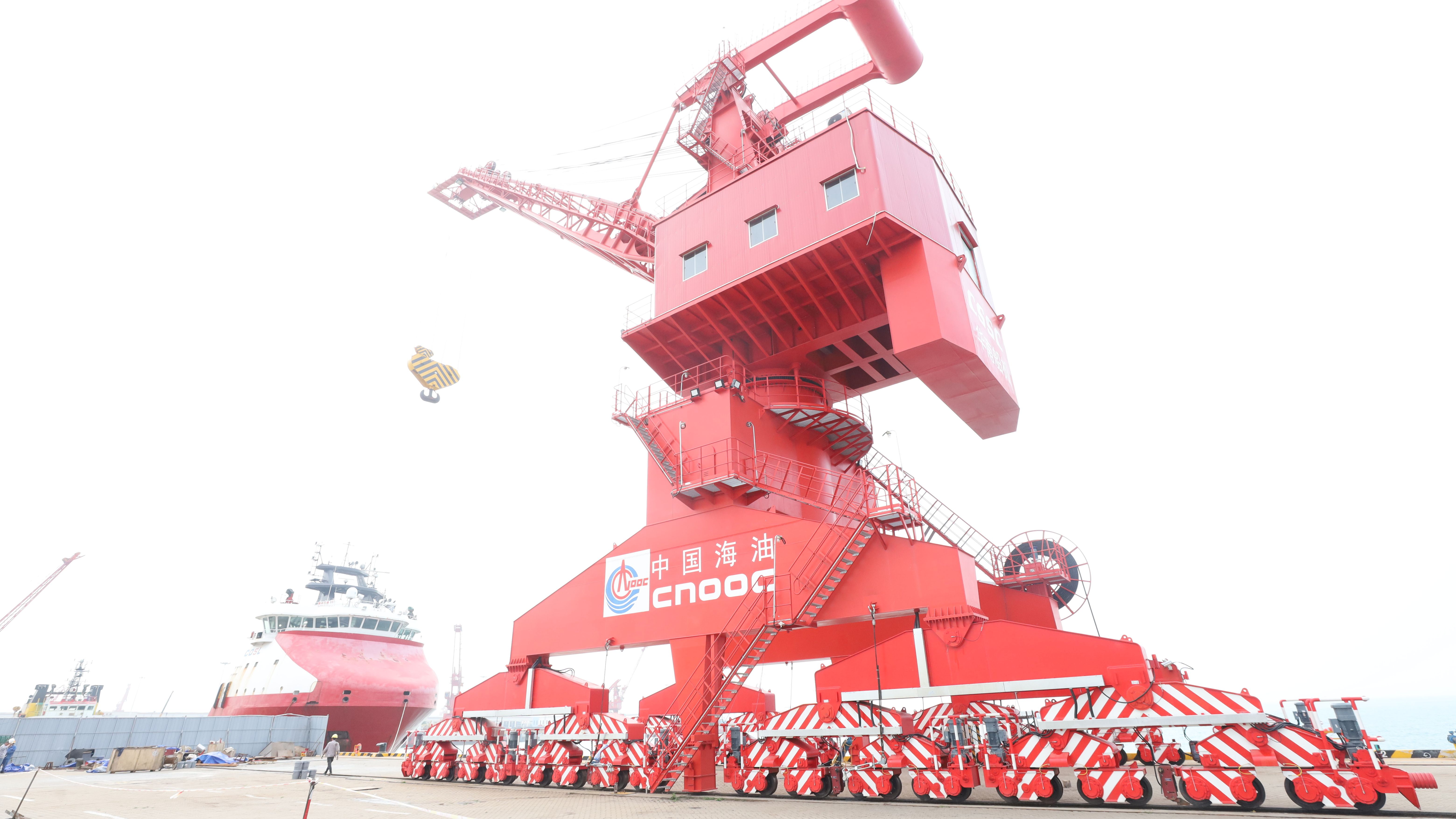 椰视频 | “大块头”助力深海物资运输 150吨级门机落户海南中海石油码头