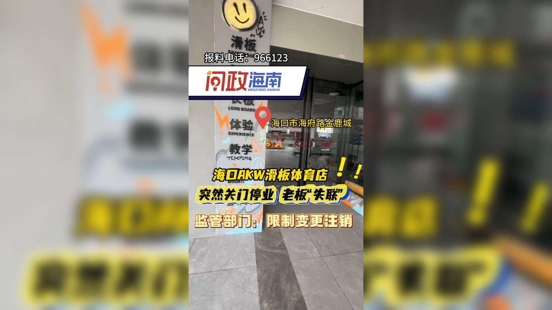 问政海南|海口AKW滑板体育店突然关门停业老板“失联” 监管部门:限制变更注销