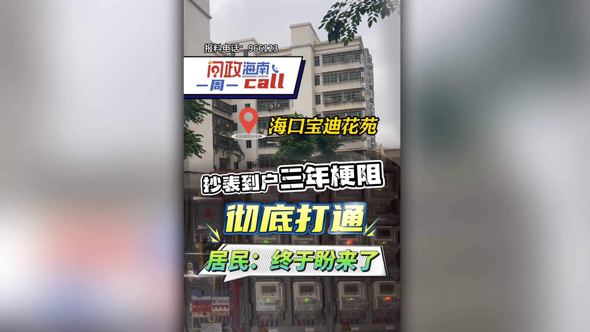 问政海南一周一call | 海口宝迪花苑抄表入户三年梗阻彻底打通 居民:终于盼来了