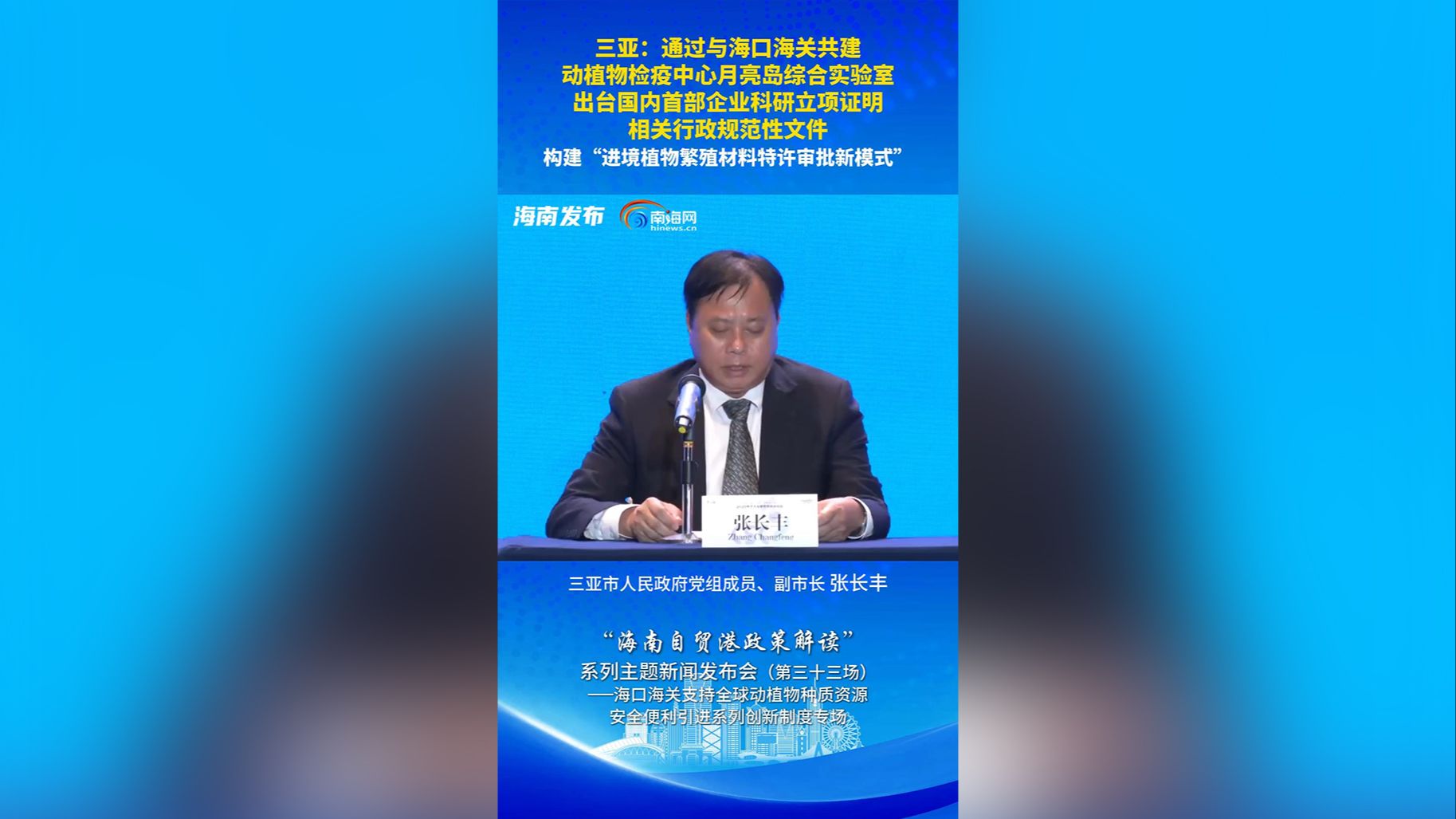 新闻发布会 | 三亚:通过与海口海关共建动植物检疫中心月亮岛综合实验室 出台国内首部企业科研立项证明相关行政规范性文件