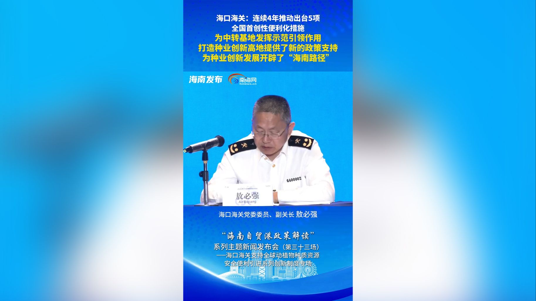 新闻发布会 | 海口海关:连续4年推动出台5项全国首创性便利化措施 为种业创新发展开辟了“海南路径”