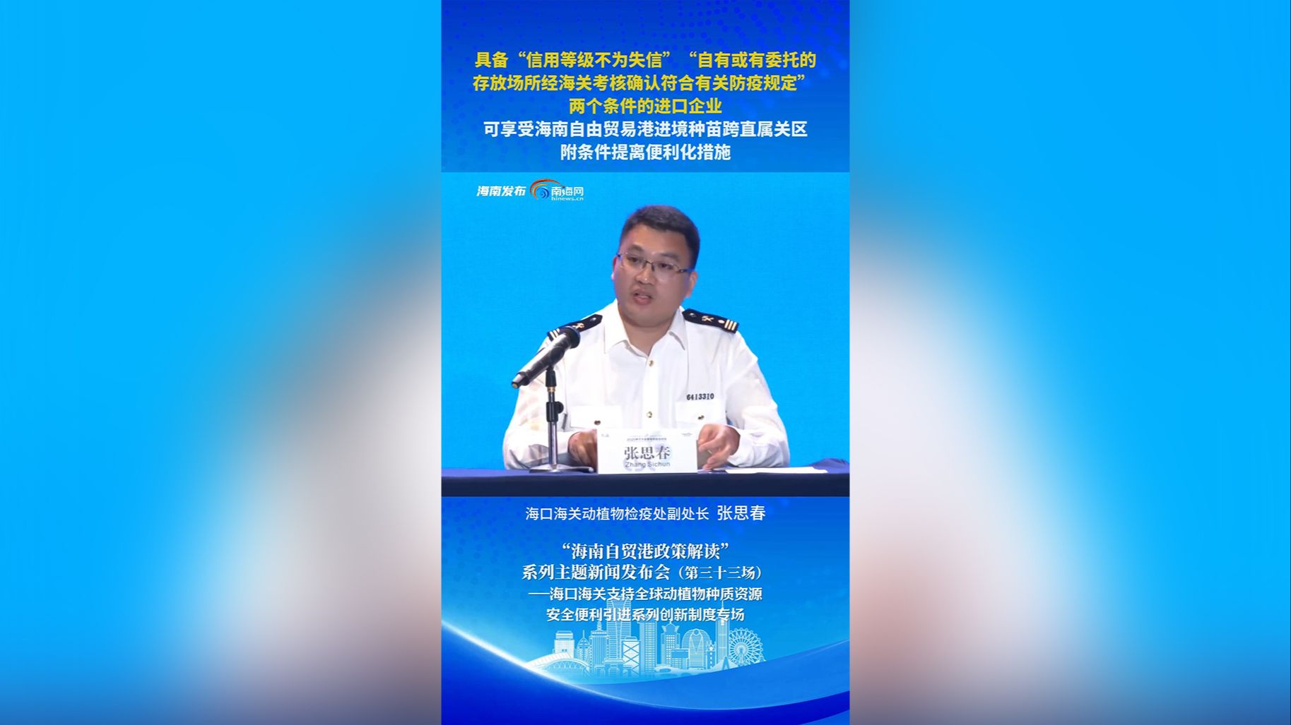 新闻发布会 | 具备这两个条件的进口企业 可享受海南自由贸易港进境种苗跨直属关区附条件提离便利化措施