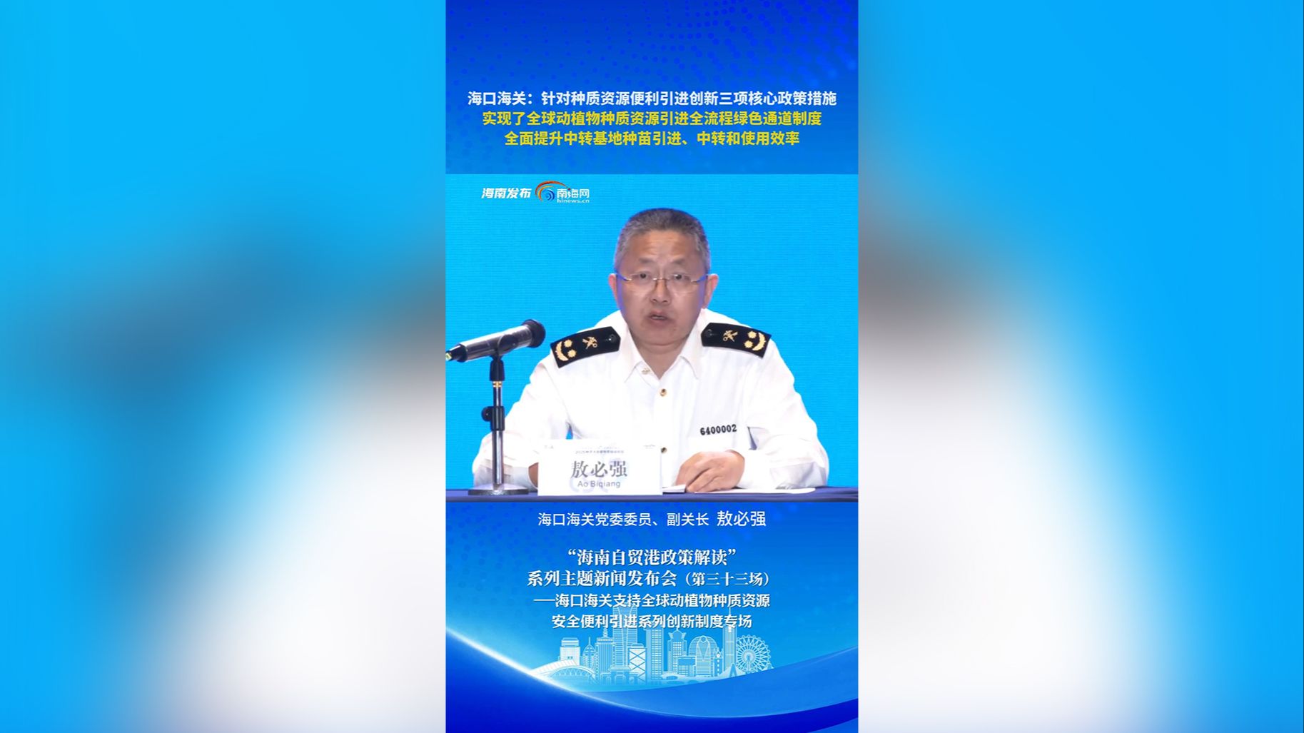 新闻发布会 | 海口海关:全面提升中转基地种苗引进、中转和使用效率