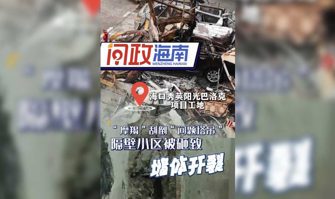 问政海南 | 海口一塔吊折断砸向相邻小区致屋墙体开裂 居民期待解决后续维修和赔偿问题