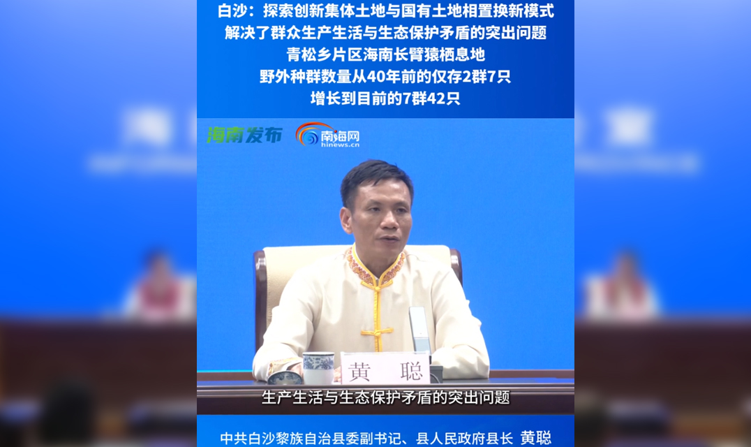 新闻发布会 | 白沙:青松乡片区海南长臂猿栖息地野外种群数量从40年前的仅存2群7只 增长到目前的7群42只
