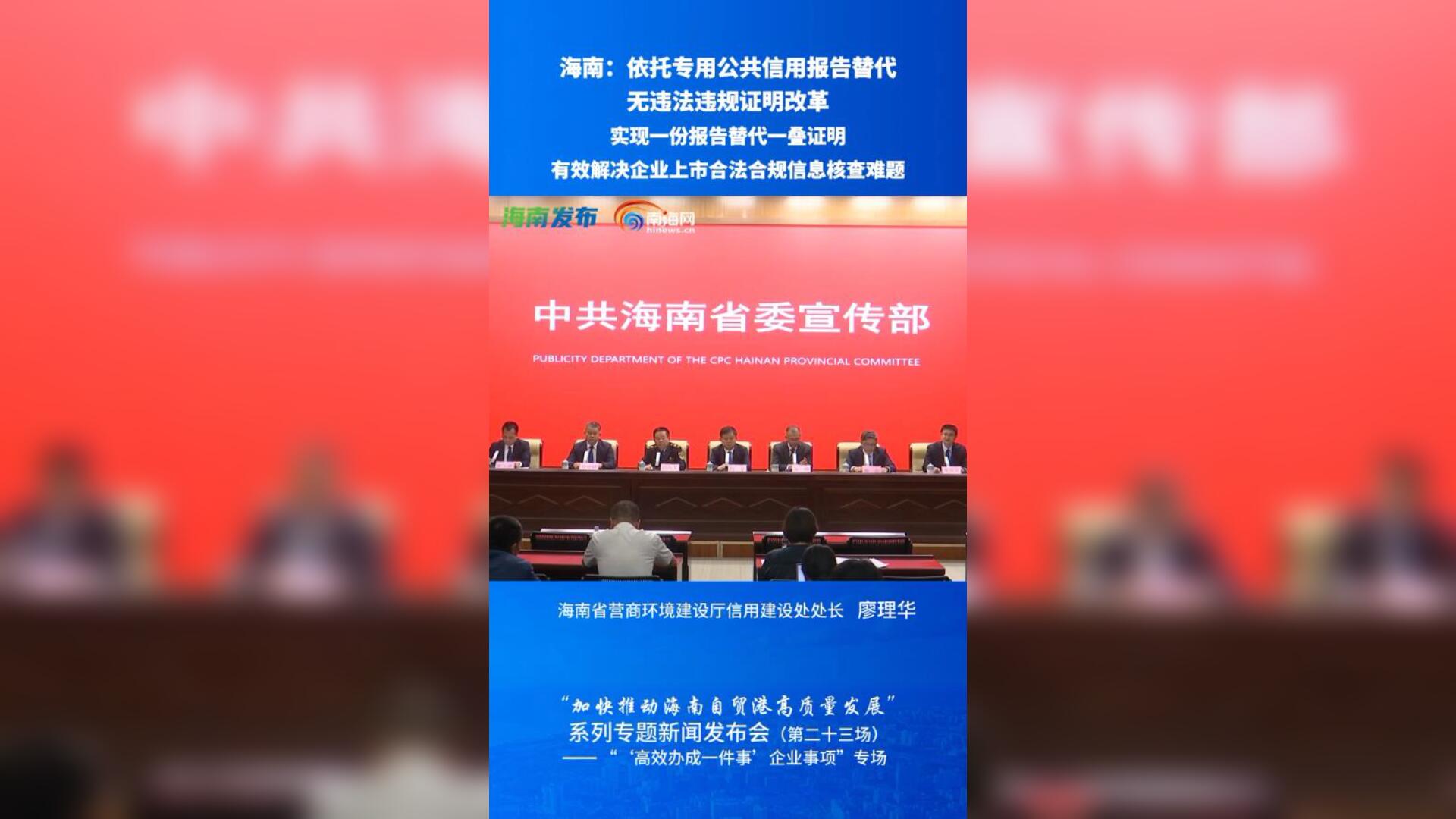 新闻发布会 | 海南:依托专用公共信用报告替代无违法违规证明改革 实现一份报告替代一叠证明