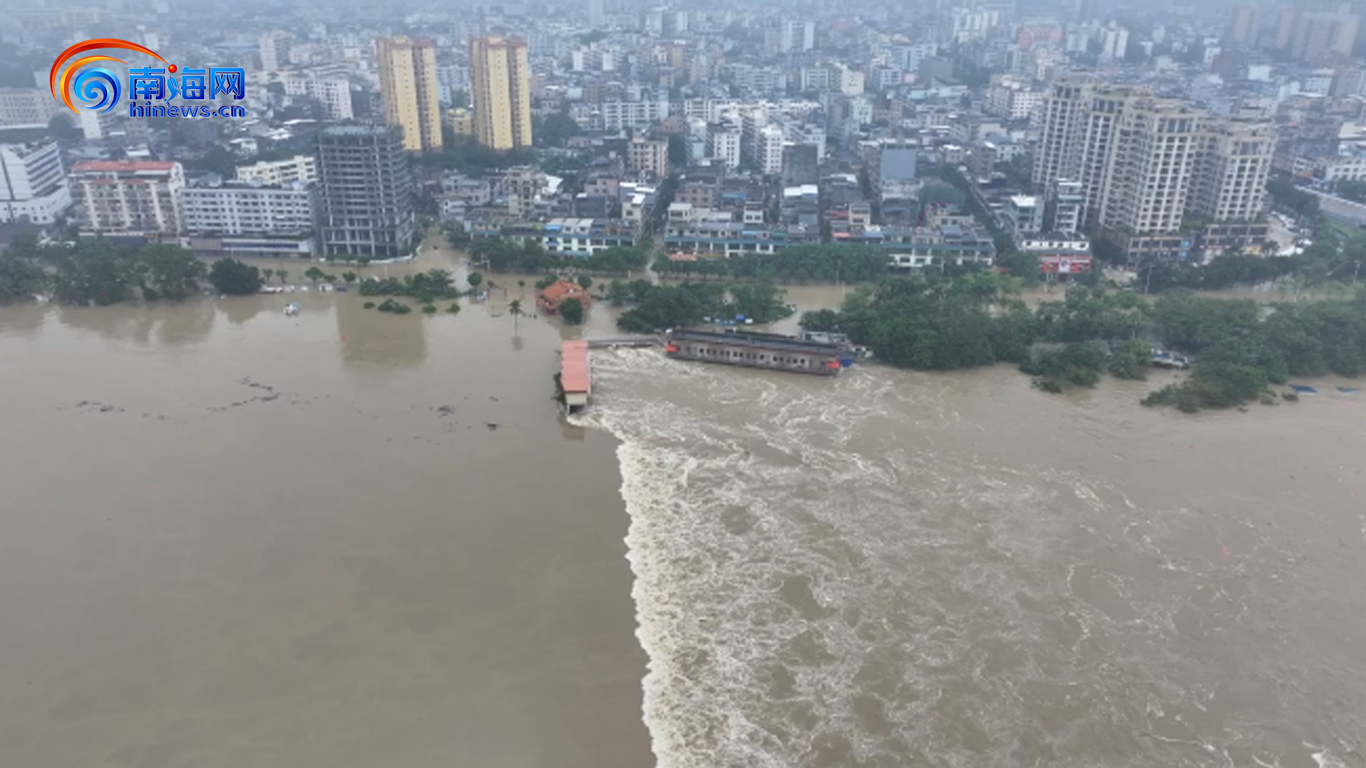 椰视频 | 航拍琼海万泉河嘉积大坝被洪水淹没 大片农田、房屋浸泡水中