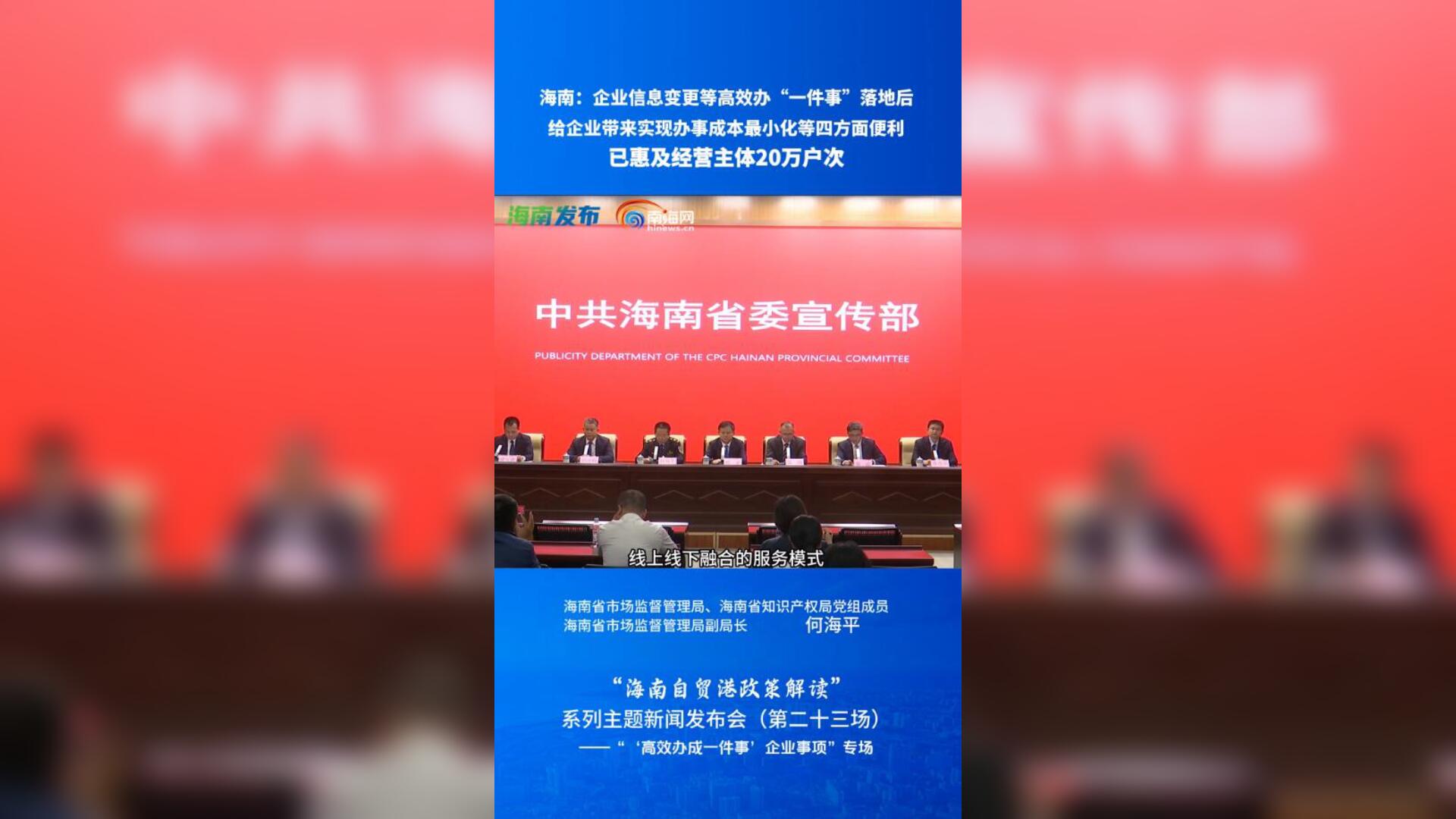 新闻发布会 | 海南:企业信息变更等高效办“一件事”落地后 已惠及经营主体20万户次