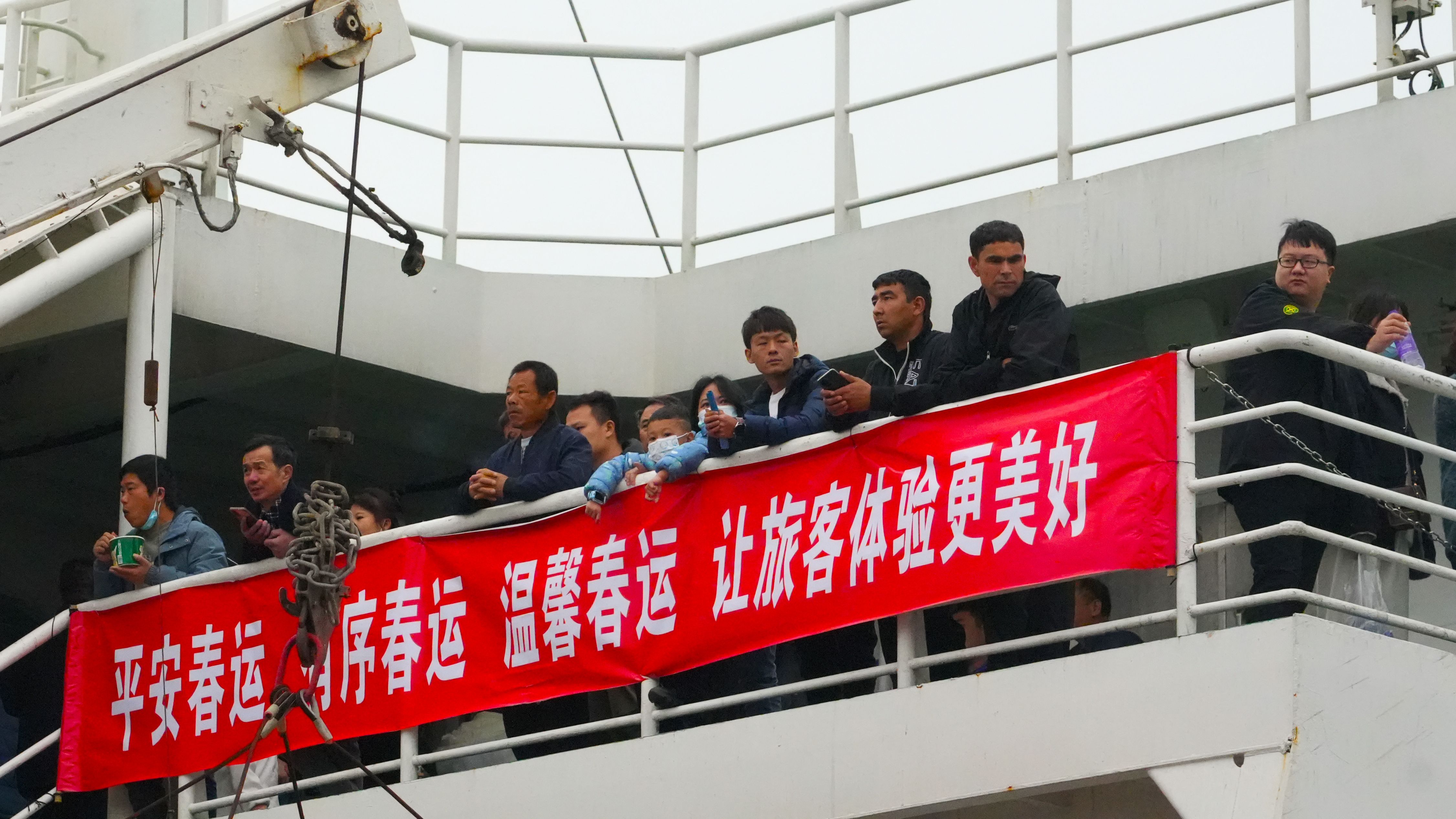 新春走基层|春运首日铁路南港多班船满载 工作人员为旅客送平安“福”字