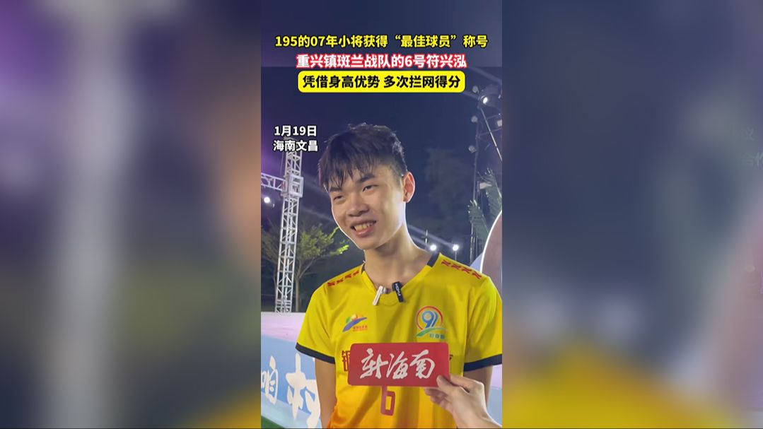 海南“村VA”迎春赛|重兴镇斑兰战队的6号小将符兴泓凭借身高优势 获得“最佳球员”称号