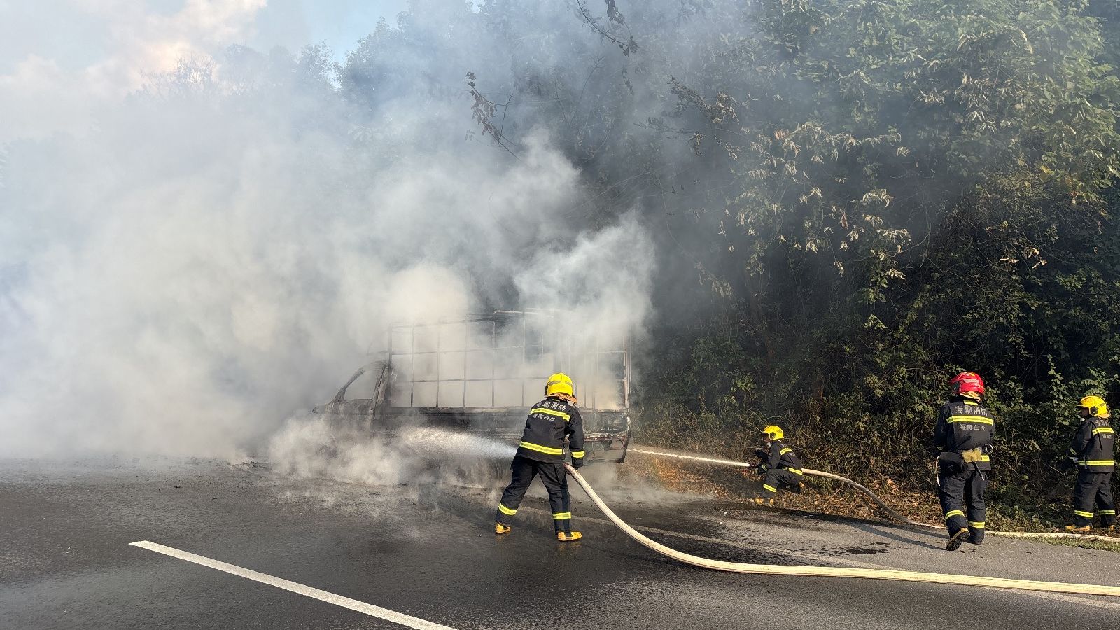 椰视频 | 高速路上一辆货车莫名起火 白沙昌江消防协力处置