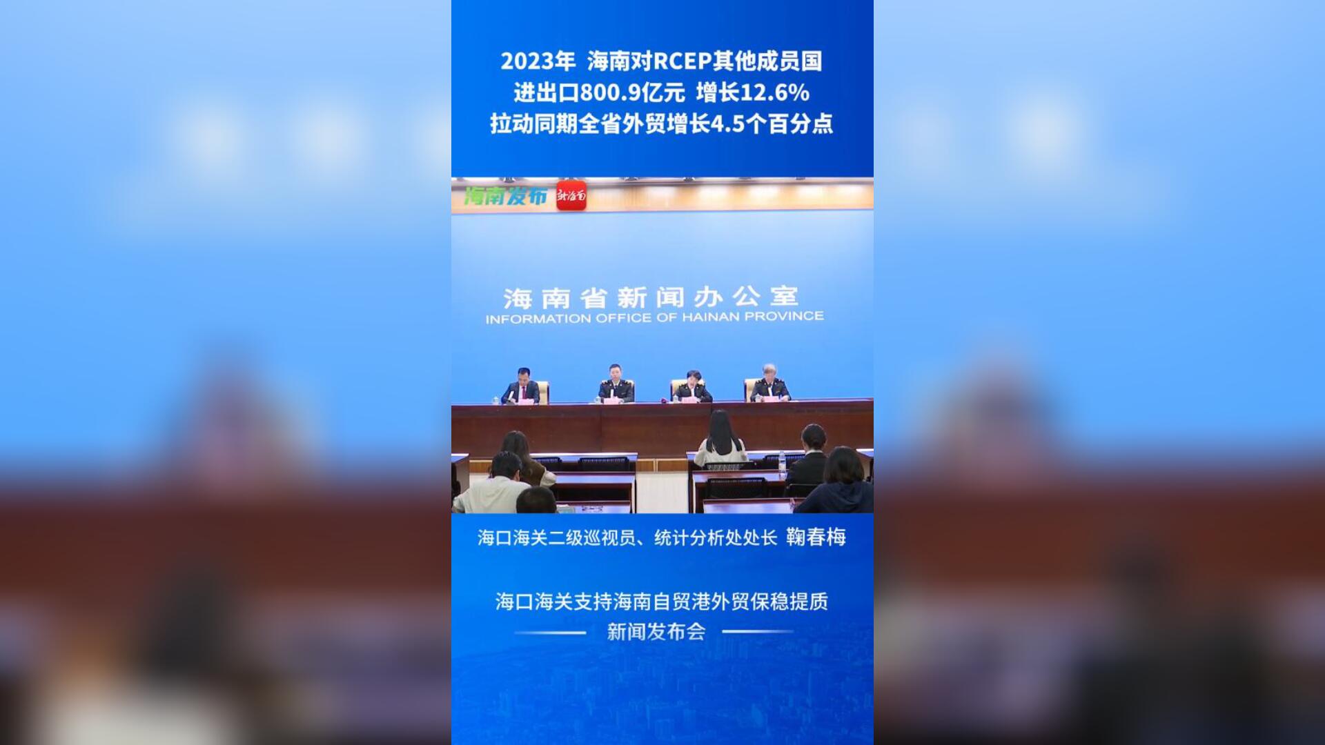 新闻发布会 | 2023年海南对RCEP其他成员国进出口800.9亿元 增长12.6%