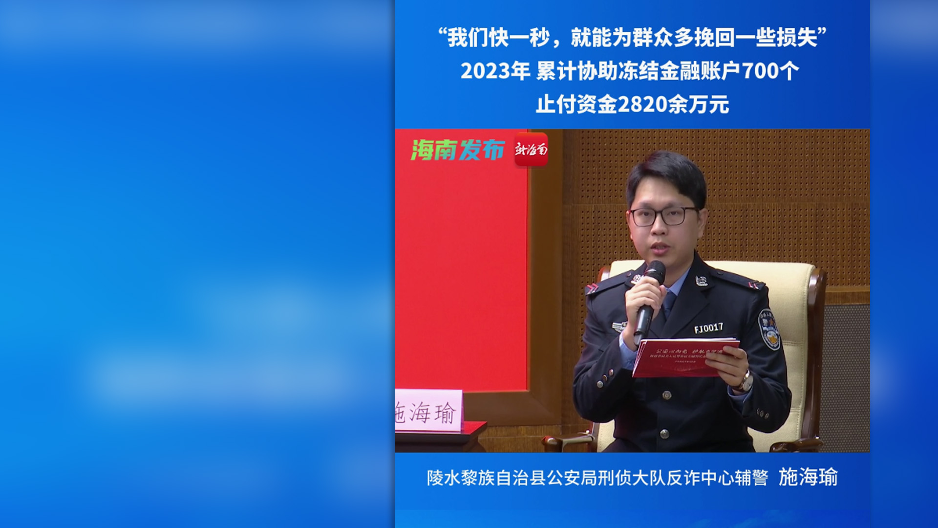 新闻发布会 | 施海瑜:2023年陵水公安局反诈中心累计协助冻结金融账户700个 止付资金2820余万元