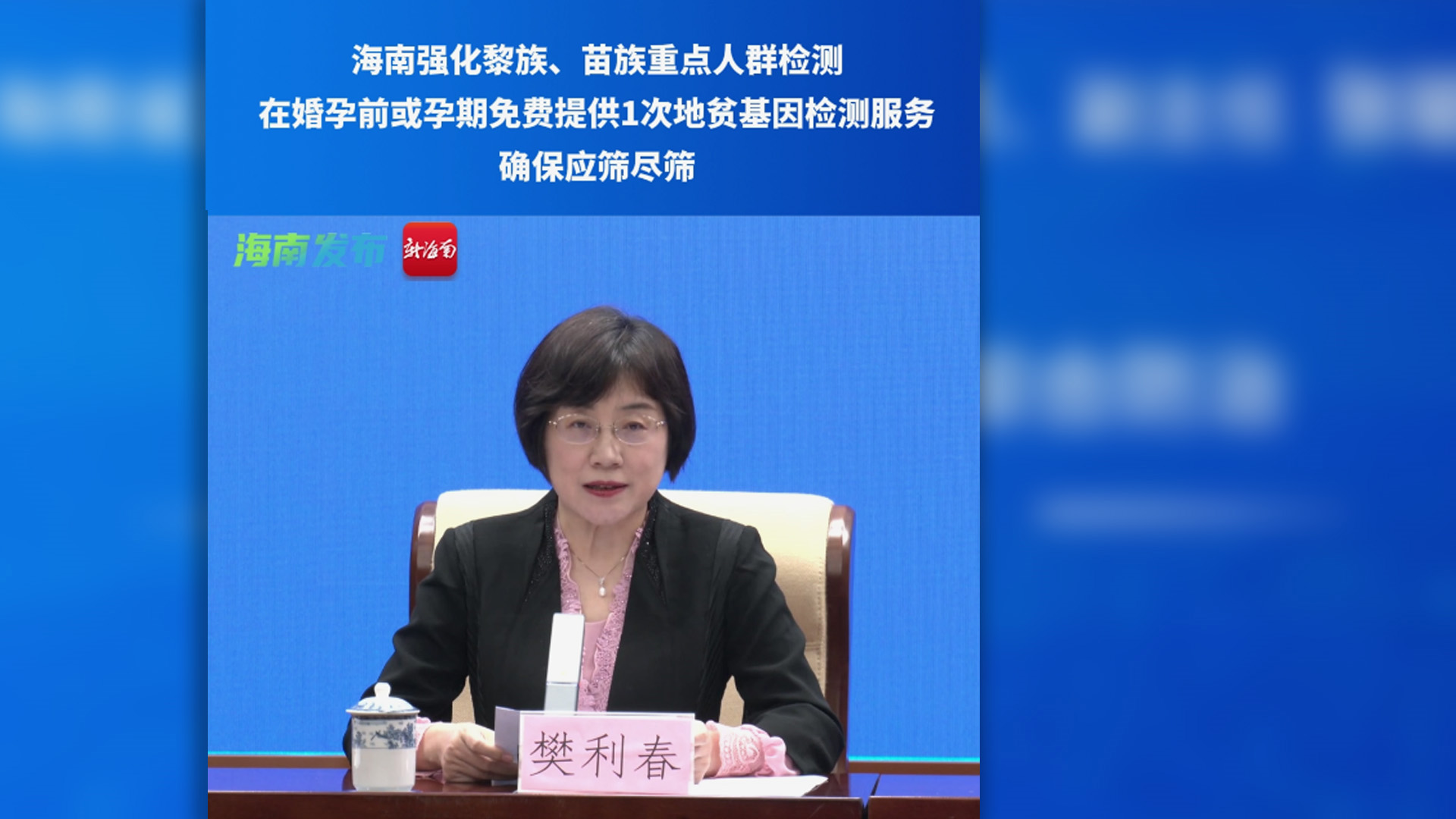 新闻发布会 | 海南强化黎族、苗族重点人群检测 在婚孕前或孕期免费提供1次地贫基因检测服务 确保应筛尽筛