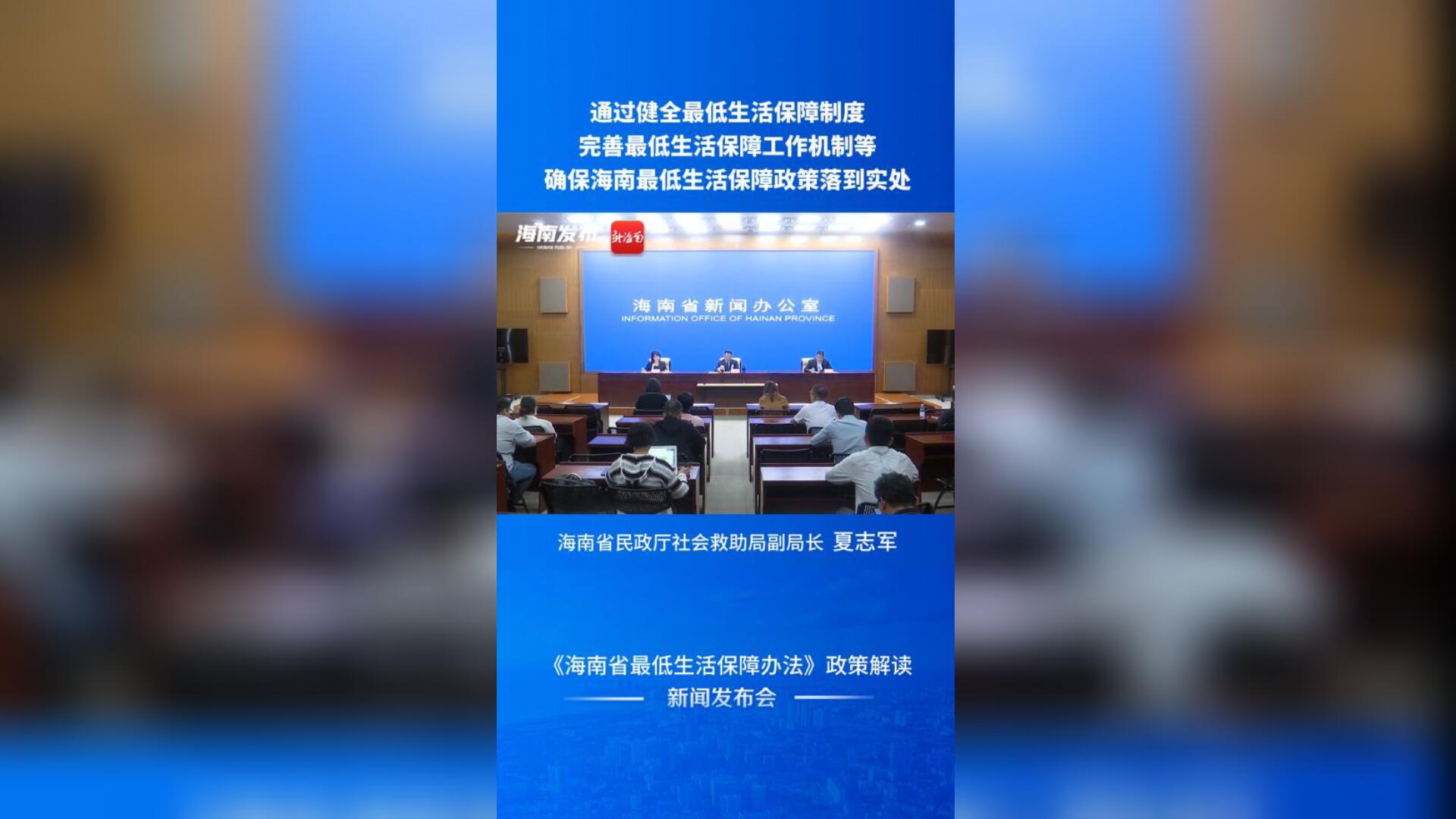 新闻发布会 | 通过健全最低生活保障制度、完善最低生活保障工作机制等确保海南最低生活保障政策落到实处
