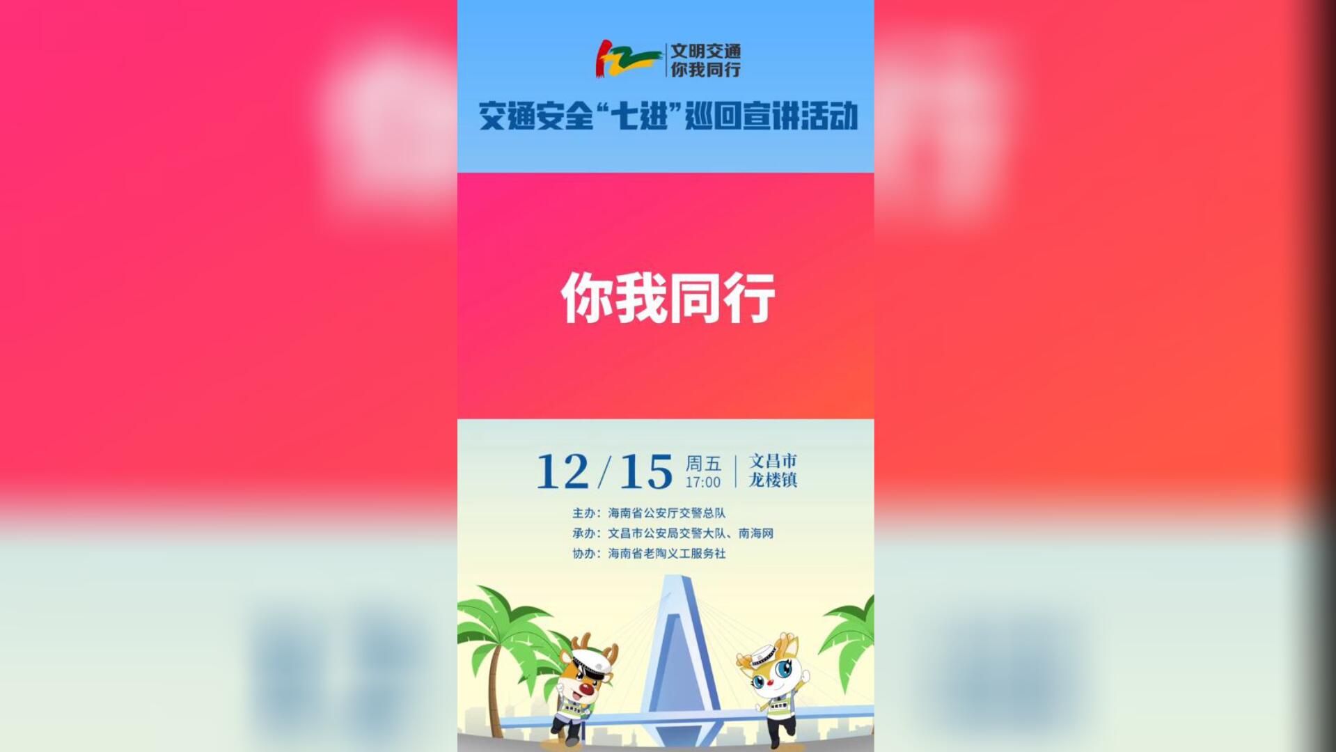 椰视频 | 交警小熊免费送!交通安全“七进”巡回宣讲活动将走进文昌龙楼镇