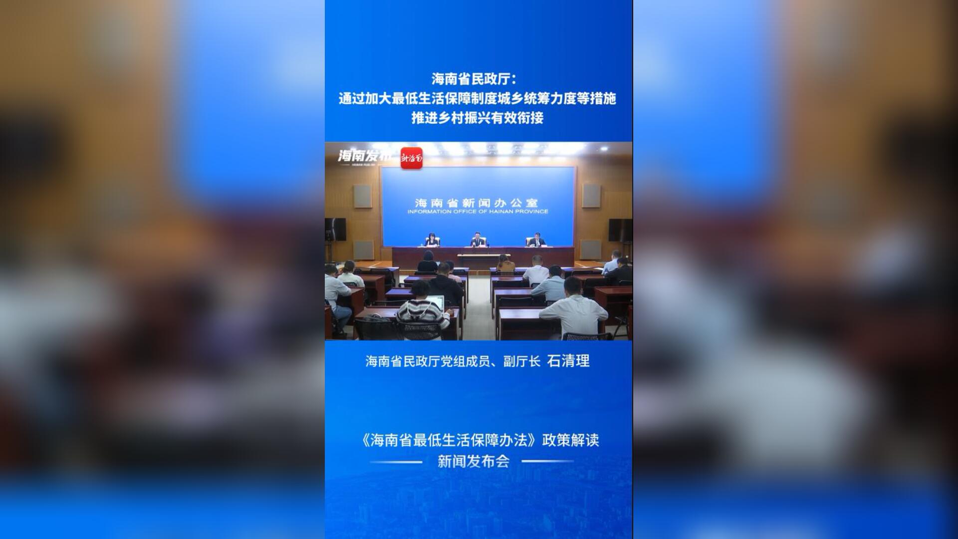 新闻发布会 | 海南省民政厅:通过加大最低生活保障制度城乡统筹力度等措施 推进乡村振兴有效衔接