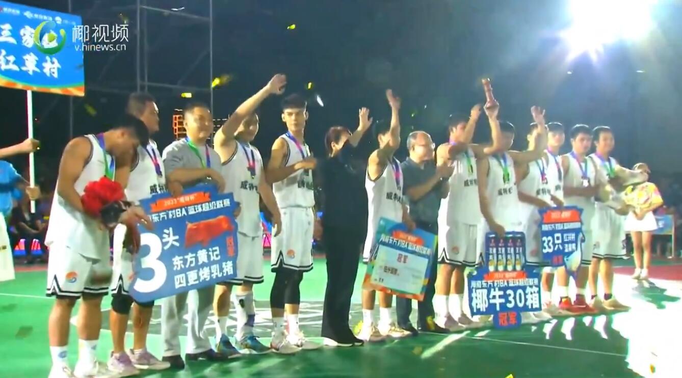 海南东方“村BA”|海南东方“村BA”篮球超级联赛总决赛,燃爆了!红草村代表队夺冠抱走3头活猪