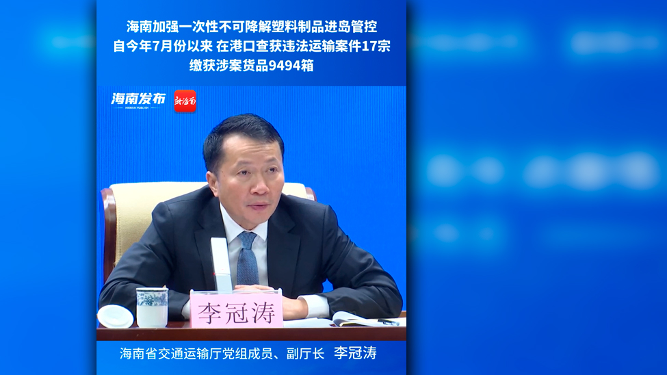 新闻发布会 | 海南加强一次性不可降解塑料制品进岛管控 自今年7月份以来 在港口查获违法运输案件17宗缴获涉案货品9494箱