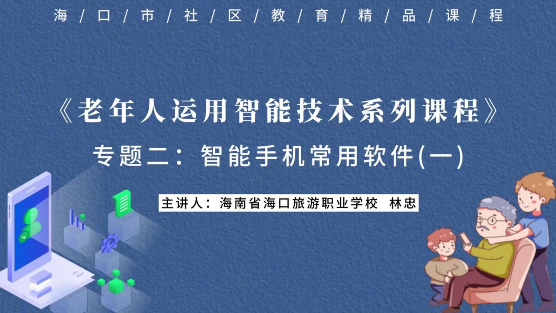2023年海口市社区教育精品课程|老年人运用智能技术系列课程专题二:智能手机常用软件(一)