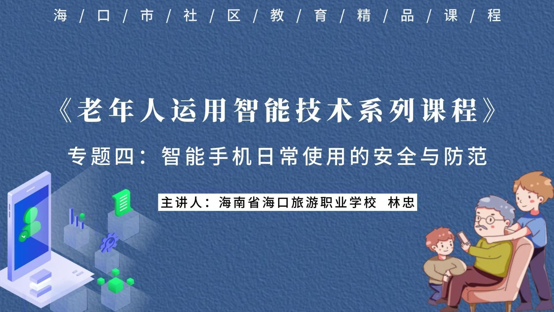 2023年海口市社区教育精品课程|老年人运用智能技术系列课程专题四:智能手机日常使用的安全与防范