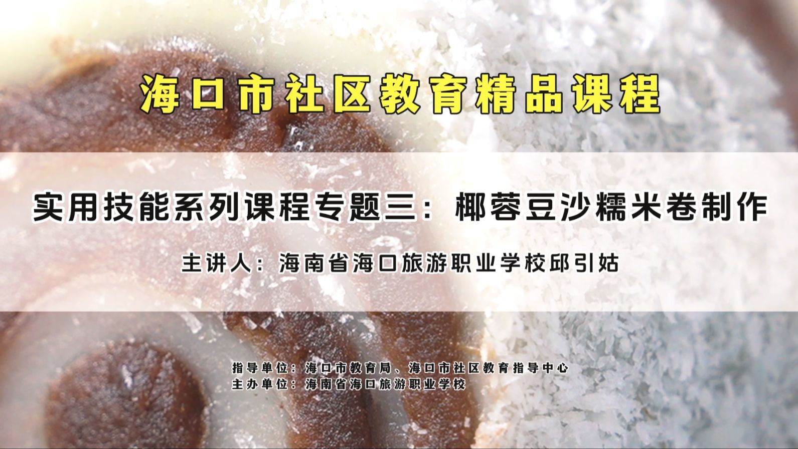 2023年海口市社区教育精品课程|实用技能系列课程专题三:椰蓉糯米卷制作