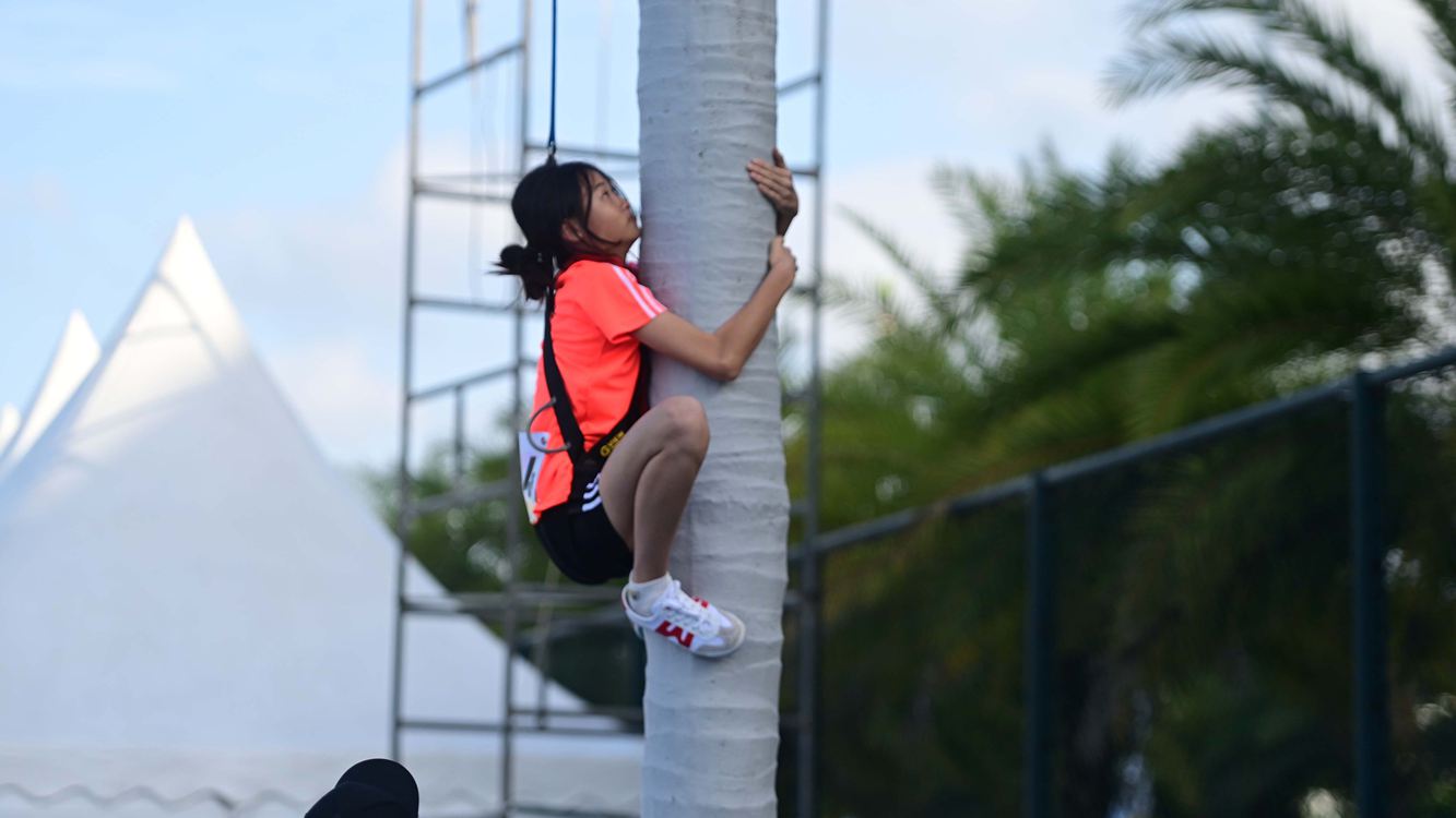 实拍海南省第七届少数民族传统体育运动会“攀椰竞速”开赛