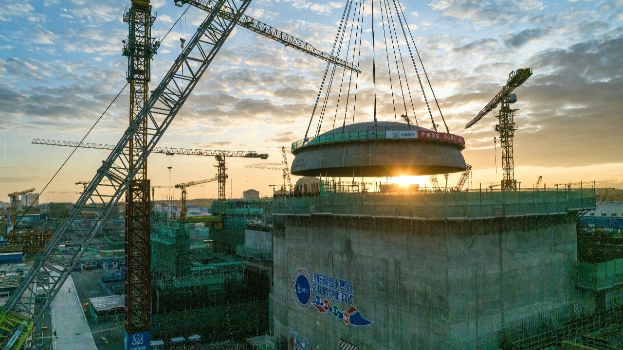 椰视频|核能充电宝“加冕”!“玲龙一号”钢制安全壳全部吊装就位