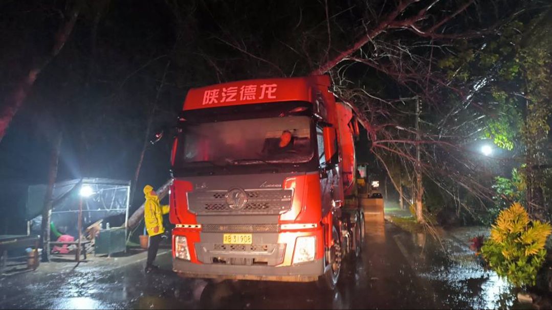 椰视频 | 万宁:强风雨致大树倾倒压车 消防员紧急处置