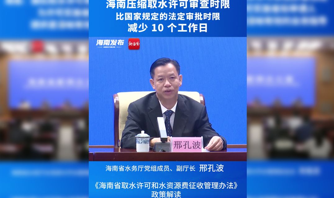 新闻发布会 | 海南压缩取水许可审查时限 比国家规定的法定审批时限减少 10 个工作日