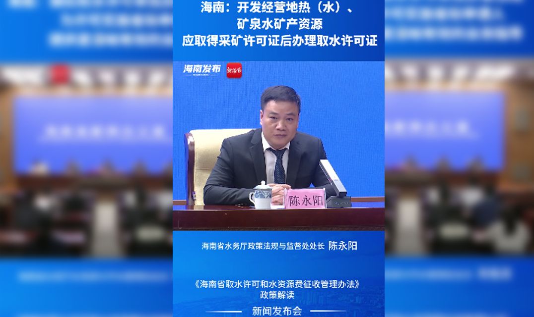 新闻发布会 | 海南:开发经营地热(水)、矿泉水矿产资源 应取得采矿许可证后办理取水许可证