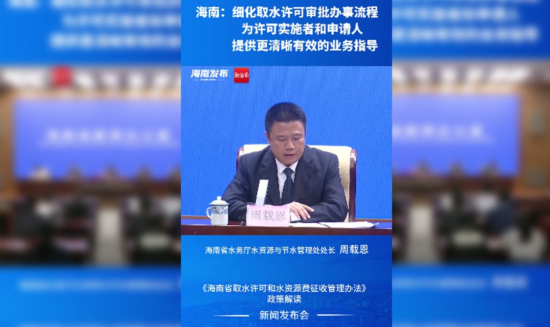 新闻发布会 | 海南:细化取水许可审批办事流程 为许可实施者和申请人提供更清晰有效的业务指导