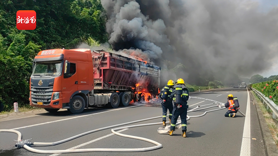 椰视频 | 大货车高速路上起火 万宁消防紧急出动救援