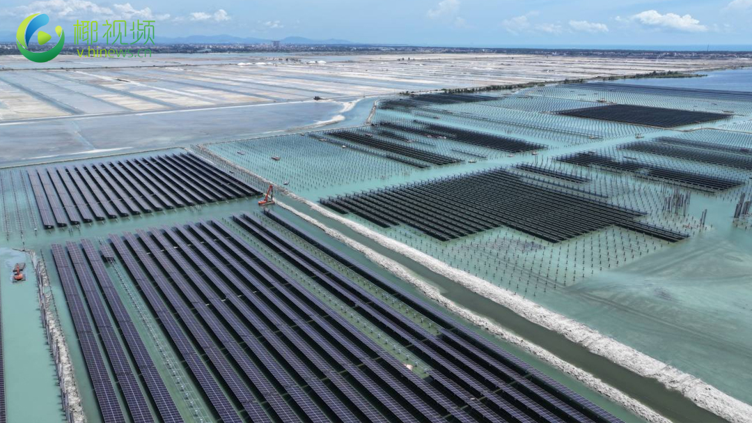 椰视频 | 海南最大的滩涂光伏项目:乐东莺歌海纳潮湖200MW光伏项目 力争9月内并网发电