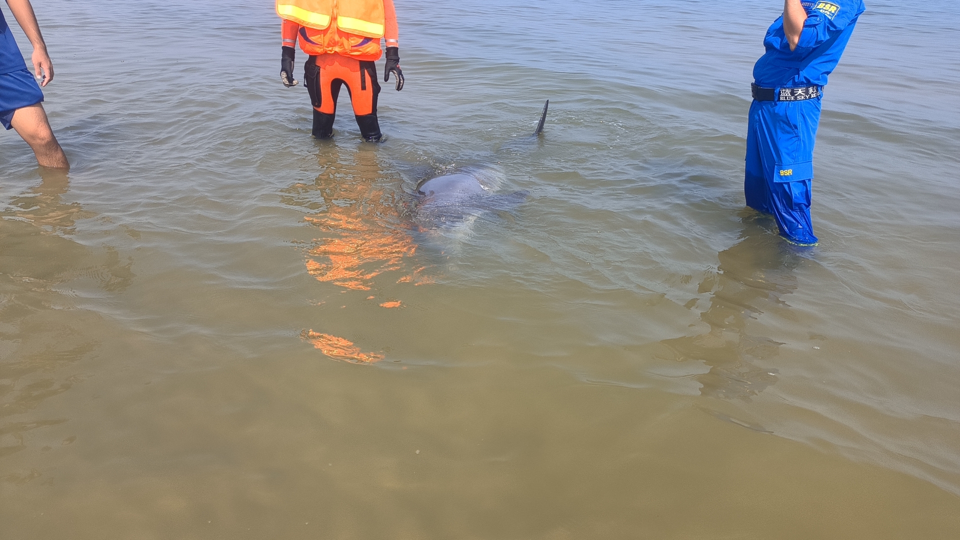 椰视频 | 海口一海滩有受伤海豚搁浅 海南蓝天救援队正在救援中