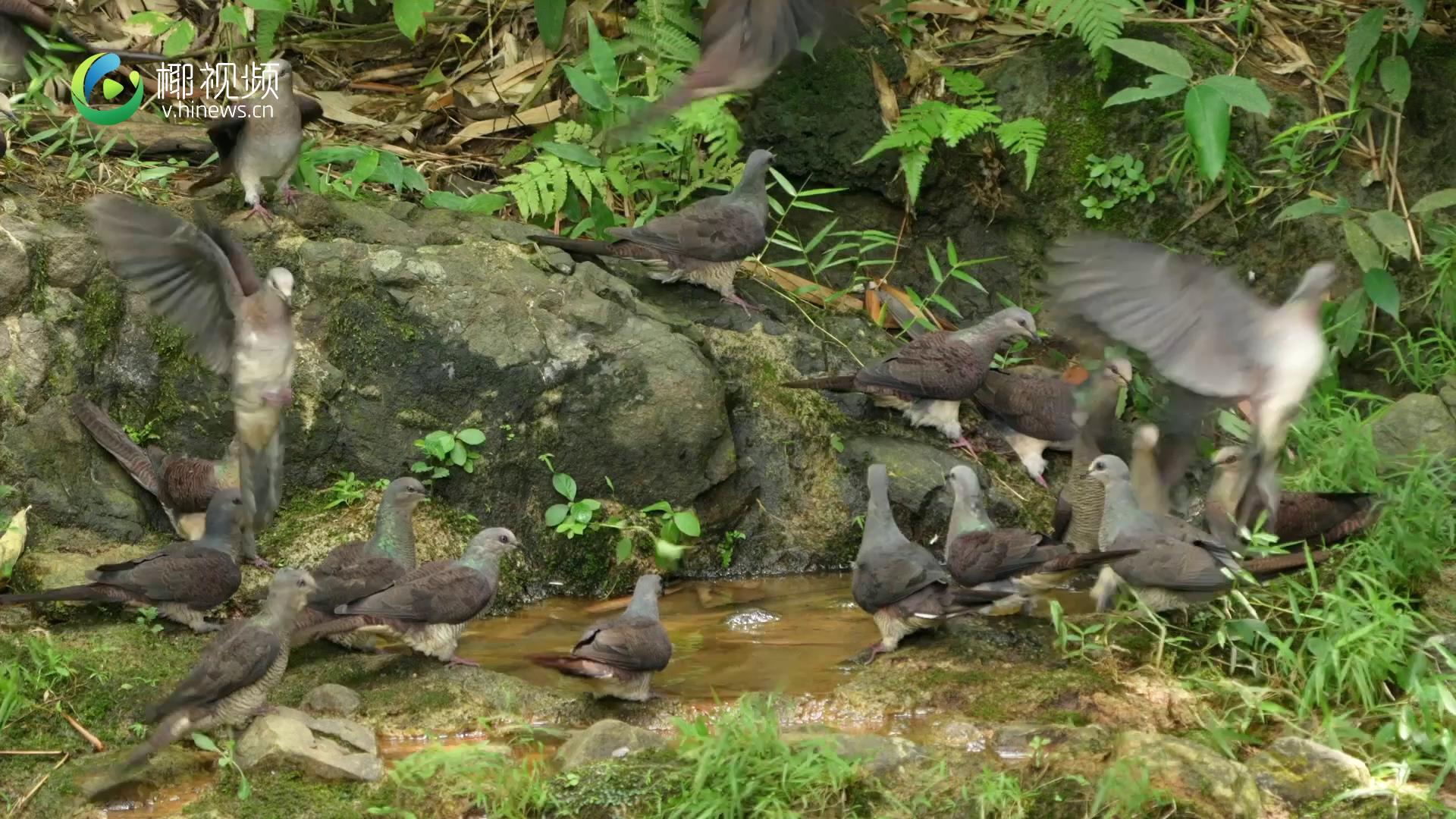 椰视频 | 罕见!国家二级保护动物斑尾鹃鸠成群溪边饮水