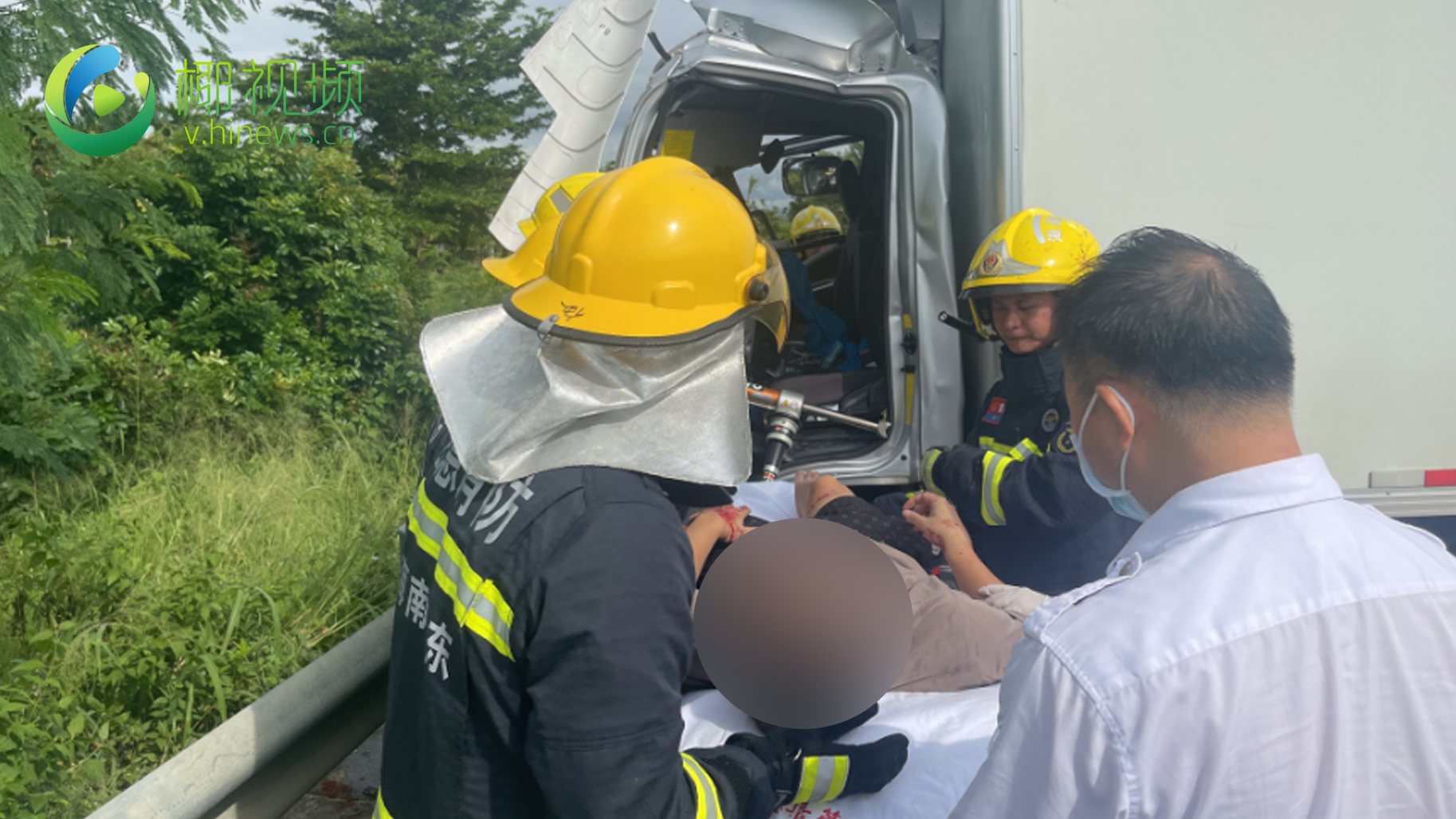 椰视频 | 高速上两货车追尾司机被困 乐东消防迅速救援