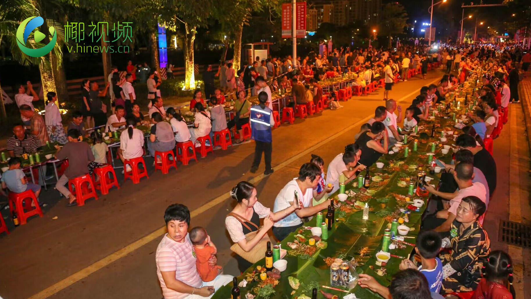 椰视频 | 海南保亭嬉水节“千人舞·百桌宴” 市民游客欢聚一堂共享欢乐时光