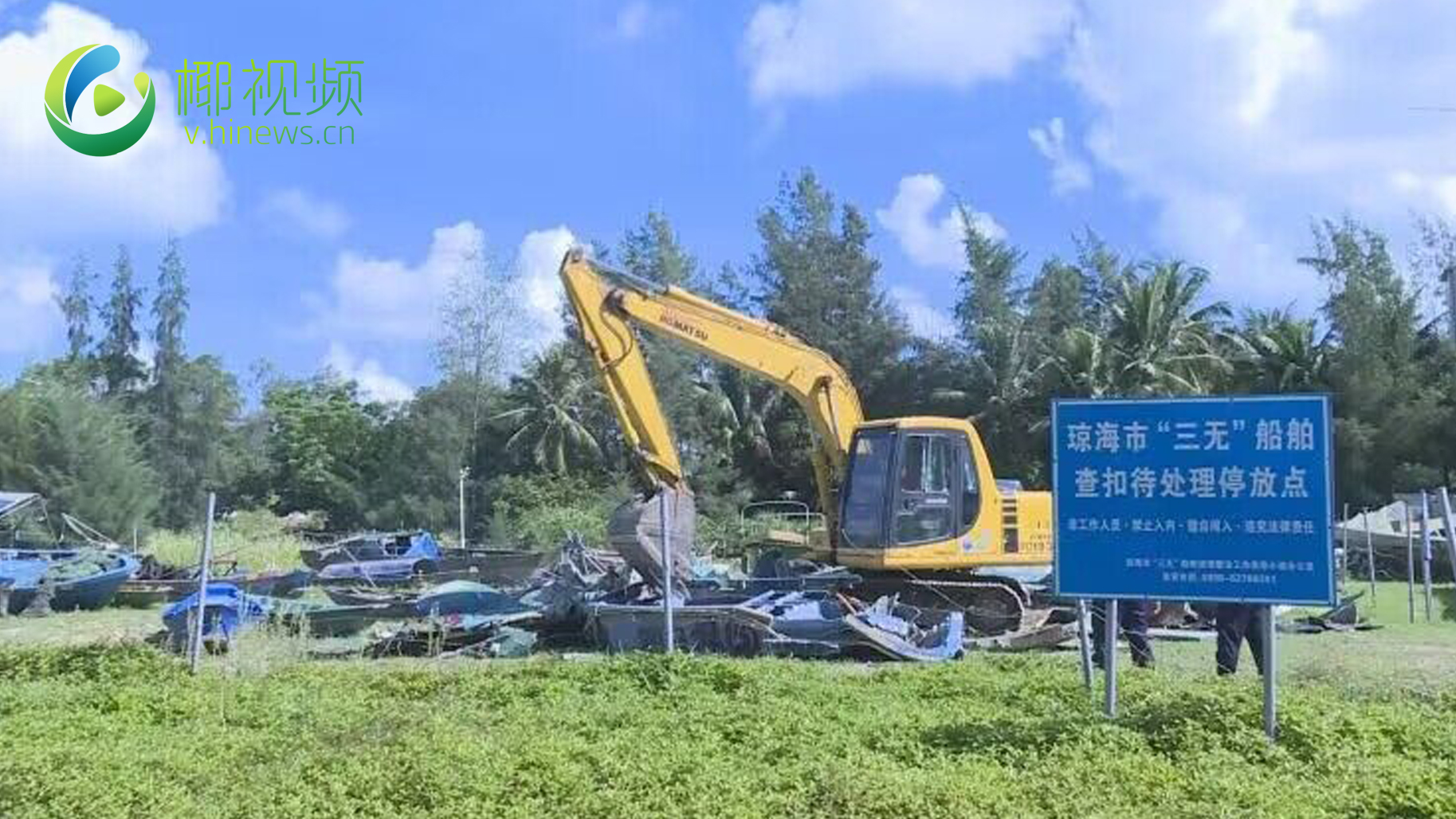 椰视频 | 震慑违法捕捞!琼海集中拆解11艘“三无”船舶