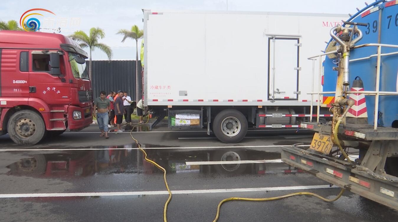 椰视频 | 海口玉禾田环卫公司派出水车为待渡货车送水