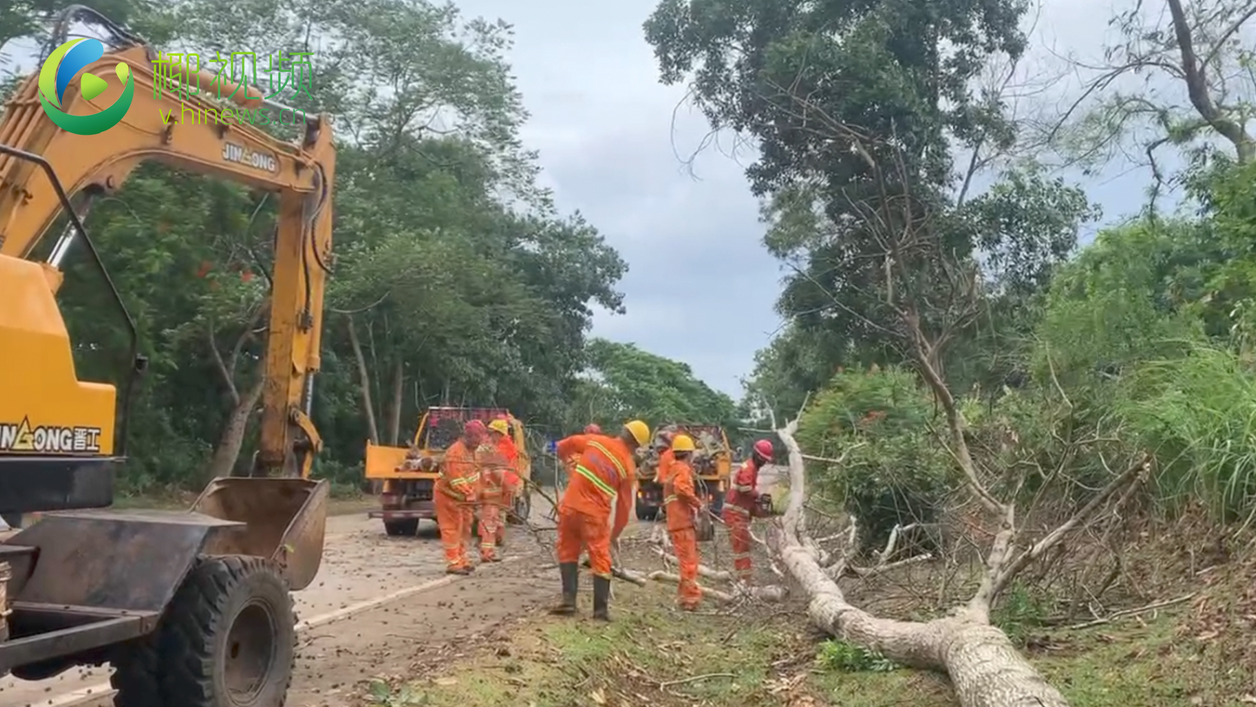 椰视频 | 海口:公路养护工人清理具有安全隐患的树木 储备沙袋运往各道班