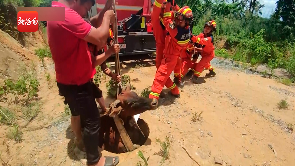 椰视频 | 600斤怀孕母牛被困废弃电缆井 琼中消防成功救援